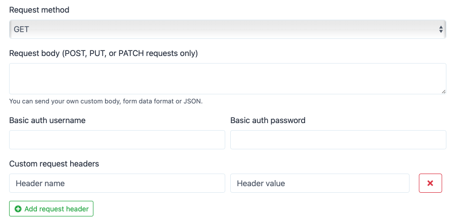 Request method, request body, basic auth & custom request headers.